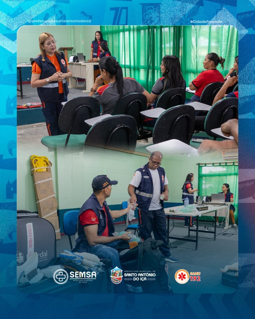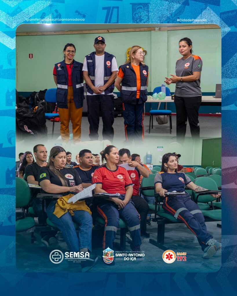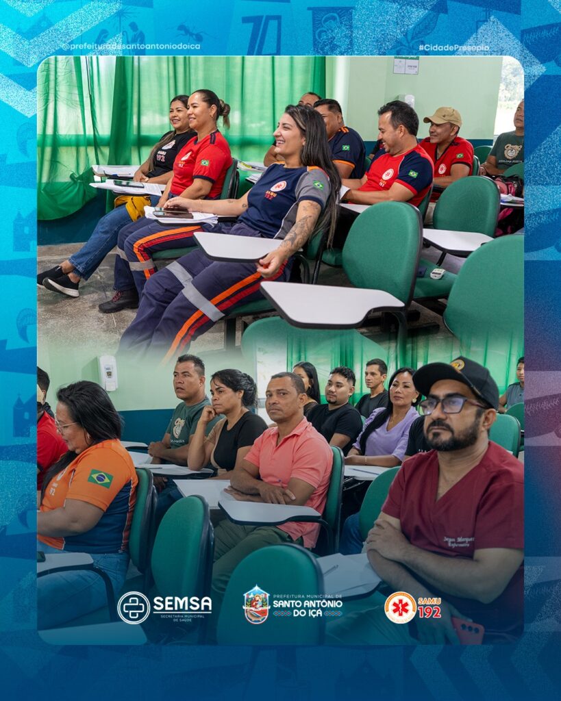 A Prefeitura de Santo Antônio do Içá, por meio da Secretaria Municipal de Saúde (SEMSA), acompanhou neste domingo (19/04) a abertura da capacitação realizada pelo Serviço de Atendimento Móvel de Urgência (SAMU), órgão de referência em atendimentos de emergência, com equipe vinda de Manaus. O treinamento, realizado no Auditório da UEA, reúne servidores da saúde municipal e tem como objetivo fortalecer conhecimentos e práticas voltadas ao atendimento de urgência e emergência, contribuindo diretamente para a melhoria dos serviços prestados à população. A Prefeitura agradece ao SAMU pela parceria e pela oportunidade de compartilhar experiências e conhecimentos que irão reforçar ainda mais a qualificação dos profissionais do município.